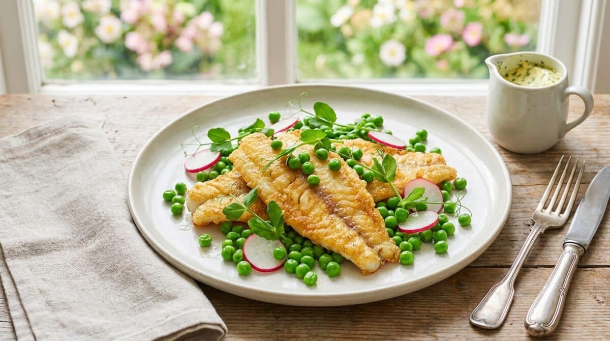 As spring begins to paint the garden with fresh colours, I find myself reaching for meals that are both light and satisfying. This crispy fish paired with fresh peas and radish has quickly become my favourite for a bright, quick dish that still feels special. It’s simple, fresh, and packed with that delightful springtime crunch.